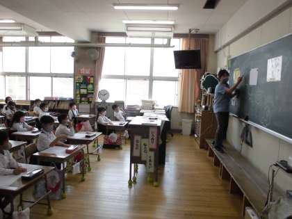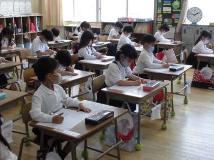 金曜日の5時間目。一週間分の疲れが一番たまる時間帯ですが、疲れや眠気にも負けず、1年生の子どもたちは一生懸命頑張っています。