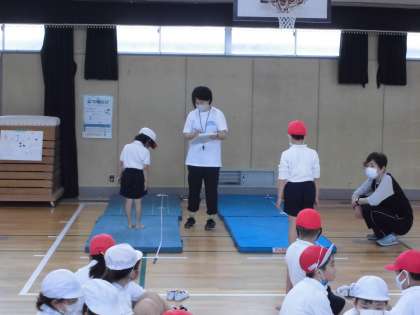 今日はあいにくの雨で、体育館の中でできる種目だけでしたが、みんな自分の力を精一杯出そうと頑張っていました。