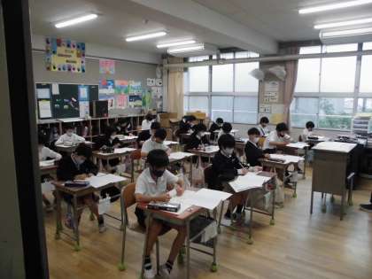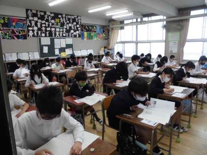 問題が配られると、全員真剣な表情でテストに向き合い、一生懸命考え、取り組んでいました。