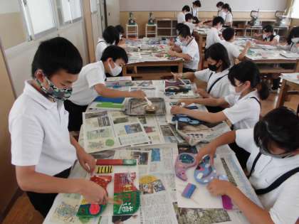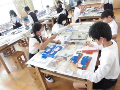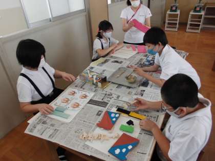 6年生の図工では、テープカッターづくりに取り組んでいます。