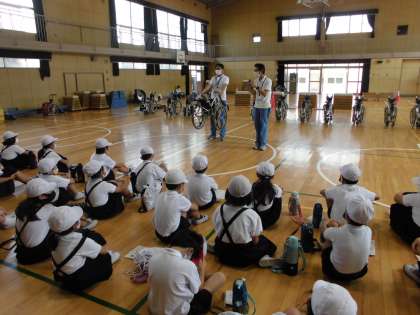 車いすを見たことはあっても、実際に触ったりのったりするのは初めてで、車いすの基本的な構造から乗った時の操作の仕方を教えていただきました。