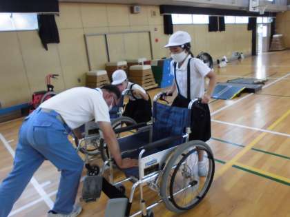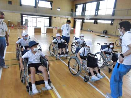 大阪市立心身障がい者リハビリテーションセンターから講師の方に来ていただき、車いす体験学習がありました。