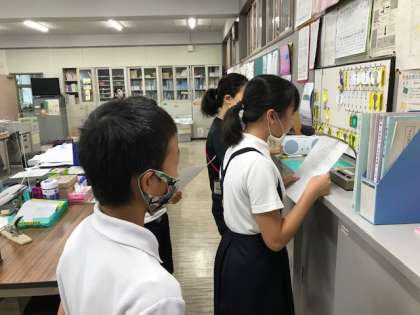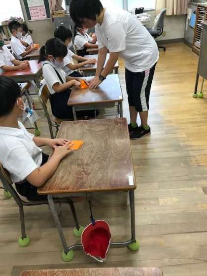 今年はコロナのため、各学級で折ることになりました。まず、各担任の先生から指導を受け、6年生の運営委員が下級生のために作成した「つるの折り方」の動画を見ながら、児童一人一人が平和を祈ってつるを折りました。出来上がった千羽鶴は6年生が修学旅行の際に平和記念公園に持っていきます。