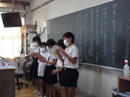 各班ごとにテーマを分け、そのテーマについての話し合いを発表し、良かったところや工夫したところなどについてみんなで話し合いました。