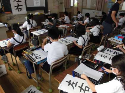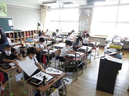 先生の話を聞きながら集中して練習に取り組む4年生です。