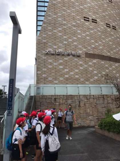 今から活動班に分かれて、大坂城周辺の戦跡巡りをします。各ポイントで担当の班が調べてきた事を説明します。
