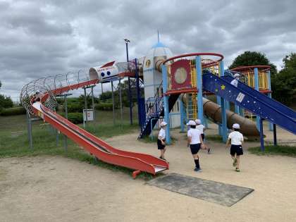 まずはロケット広場のいろいろな遊具で遊びます。
