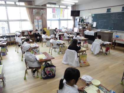 おいしく給食を食べる中、お話にしっかりと耳を傾けていました。