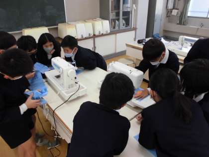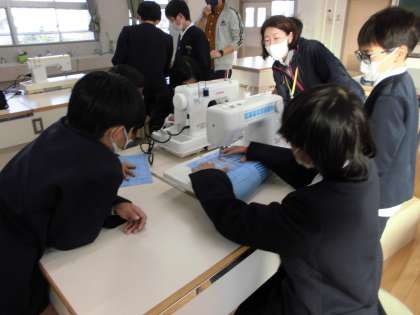 家庭科の学習でミシンを使い始めました。