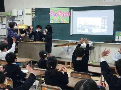 例年なら、全児童が6年生の卒業をお祝いする集会を講堂で行っていたのですが、まん延防止等重点措置が延長されたために、各教室でTeamsを使ったお祝いの会をしました。初めての試みでしたが、各学年の発表や、6年生への質問コーナー等、大いに盛り上がりました。