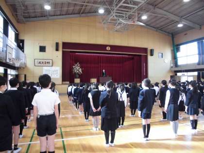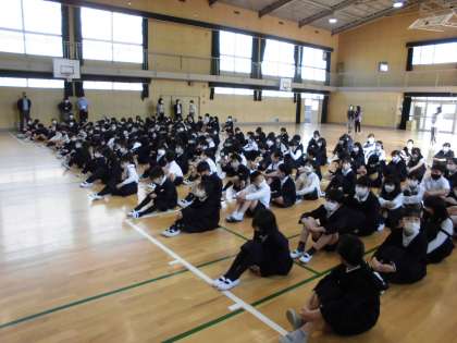 体育館に集まった子どもたちの表情からは、新しい学年への期待と不安、「新しい担任の先生は誰かな?」といったドキドキな気持ち、いろんな気持ちがあって少し緊張した様子でした。