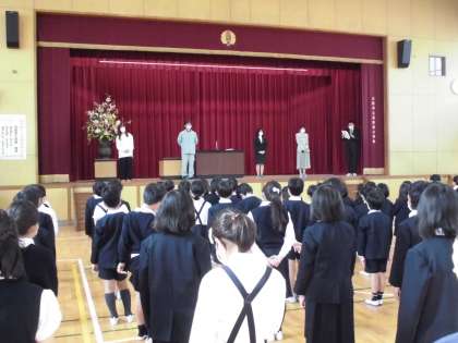 校長先生のほうから、新しく高殿南小学校に来られた先生方や高殿南小学校を去られた先生方の紹介がありました。
