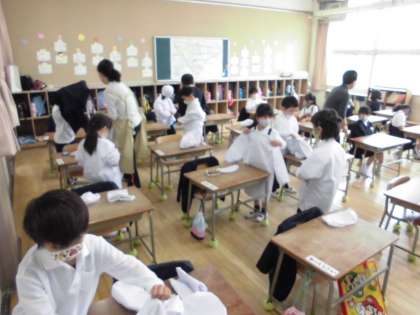 食べた後は、給食着をきちんとたたんで片づけることも頑張りました。
