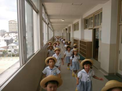 初めての幼稚園外への避難だったので、子ども達は真剣そのもの!
