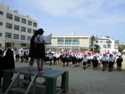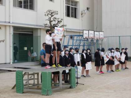 児童集会で各委員会の委員長と副委員長がそれぞれの委員会の紹介をしました。