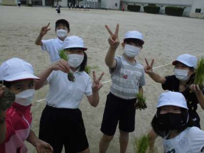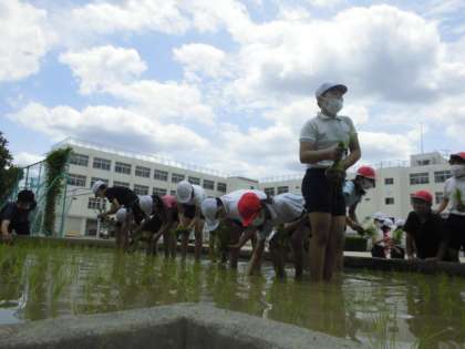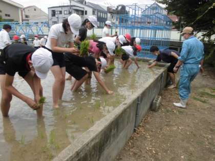 どろどろの水田に足を取られながらも、全員の力でたくさんの稲を植えました。