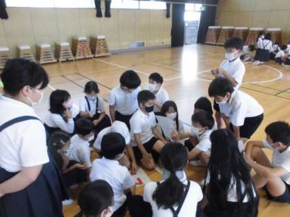 6年生がリーダーとなって一つ一つ丁寧に説明し、みんなの意見を聞きながら上手に話し合いを進めていました。特に低学年に対してとてもやさしく教えている姿がたくさん見られました。