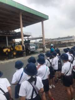 排水処理施設を見ています。セメントの材料や花壇の土になるという説明がありました。
