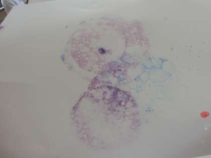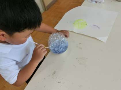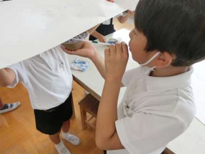 2年生が、シャボン玉液を使って、絵の製作をしていました。このあと、どうなるのか楽しみです。