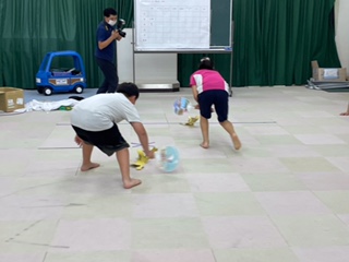 二日目夜は室内オリンピックをしました。聖火ランナー入場から選手宣誓、さまざまな競技に、1日目のキャンプファイヤーと同様、大盛り上がりで、笑ったり悔しがったりと本気で遊びました。優勝チームからは、歓喜の雄叫びが出てました。