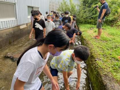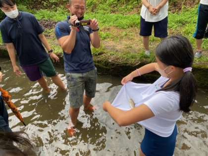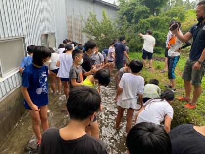 六年生の子どもたちに追いかけられて魚たちも必死に逃げ回っていました。