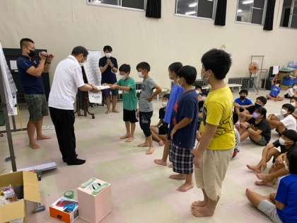 室内オリンピックで優勝したチームに賞状が授与されました!