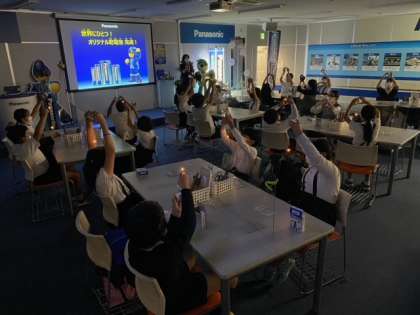 乾電池のしくみを教えて頂き、その後オリジナルの乾電池を作りました。みんな上手にできました。