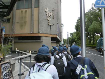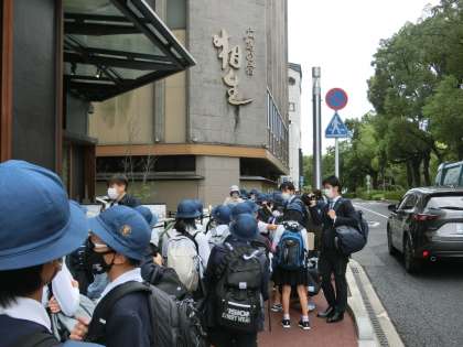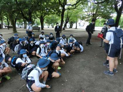宿舎について、いったん荷物を預け、平和公園の中で、お弁当を食べました。
