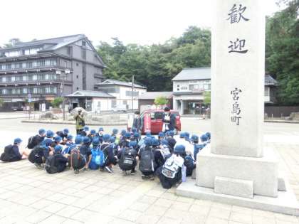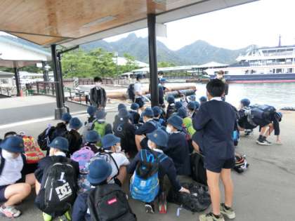 宮島に着きました。宮島伝統産業会館に向かって、しゃもじ作りをします。