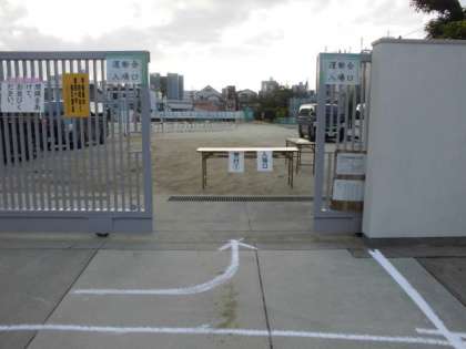 門を入りましたら、すぐに受付がありますので、そちらで健康チェックカードを提出していただき、お子さんの「学年・組・名前」をお伝えください。名簿で確認できましたら受付完了です。