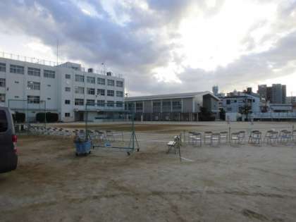 受付を過ぎて校舎側に行きますと、本部席やいす席のほうになります。