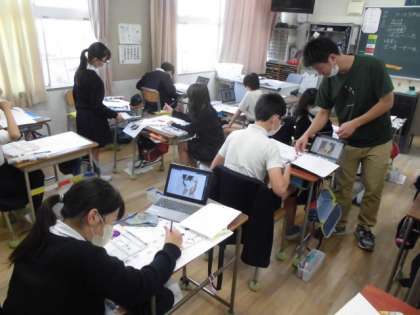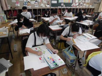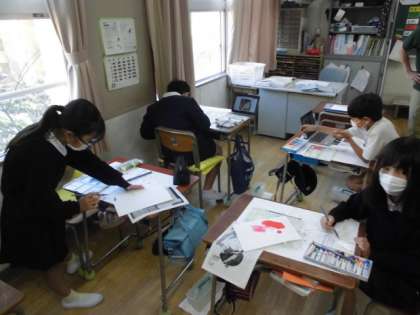 5年生は、浮世絵をモチーフにして絵画の制作活動に取り組んでいます。