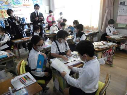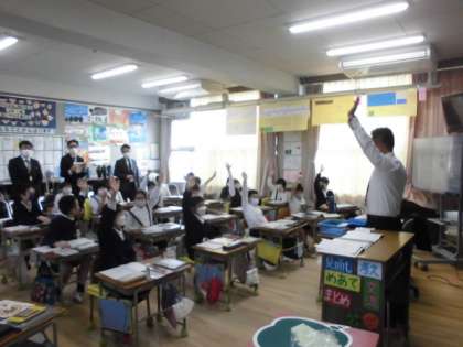 たくさんの先生方が観に来られて少し緊張した様子でしたが、先生の話をしっかりと聞いてたくさん発表したり、自分の考えを友だちと交流したり、パソコンを使って自分の考えをみんなと共有したりするなど、しっかりとがんばりました。