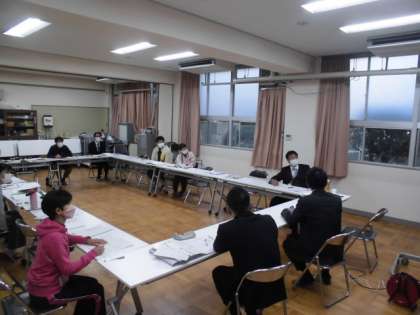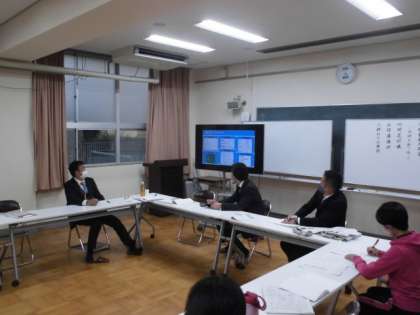 3年生での授業研究会の後、先生方でその授業についての振り返りをする討議会を行いました。