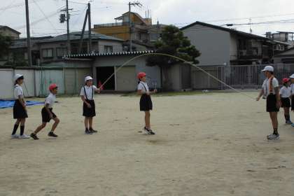 跳びました。高学年で、二人一緒に跳んでいる児童もいました。運動場