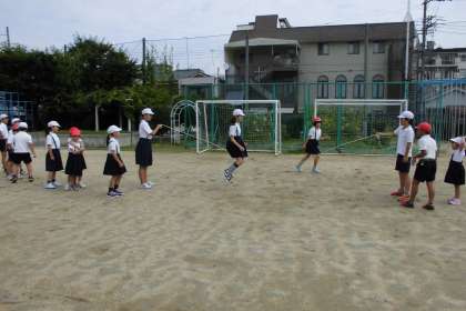 1・2年生でうまく跳べない児童は、なわを地面の上で波のようにして