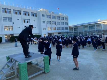 そして、週が明けて月曜日。2学期最終週の児童朝会がありました。