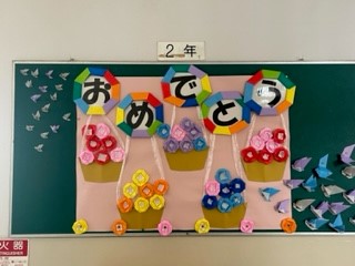 各学年のお祝い掲示も校舎のあちらこちらに掲示されています。