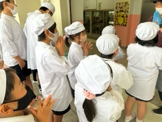 今日は、給食の最終日でした。それぞれの学級が給食調理員さんへの感謝の気持ちをつたえるあいさつを大きな声でしました。みんな、1年間、しっかりたべて大きくなりましたね。