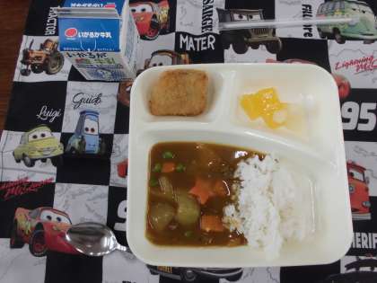 今日の給食はカツカレーライスでした。