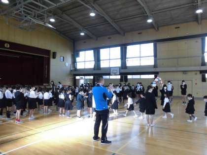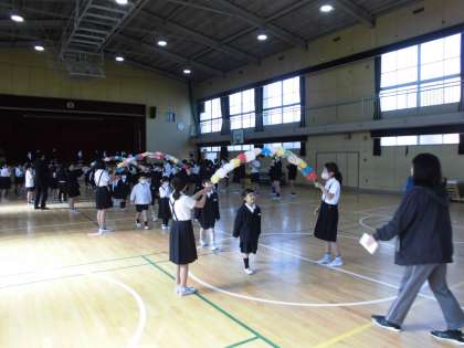 高殿南小学校のお姉さんやお兄さんたちがやさしく笑顔で歓迎をしてくれました。