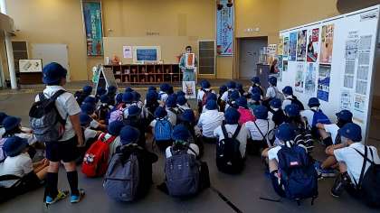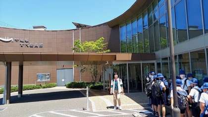 今城塚古代歴史館の見学スタートです。最初に学芸員さんから説明を聞いています