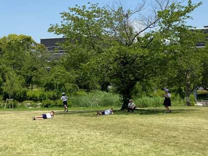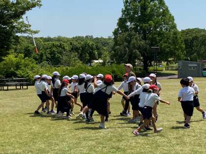 お昼ご飯、おやつタイムの後は、まったりと草原でゴロゴロしたり、元気に走り回ったり遊んだりしました。
