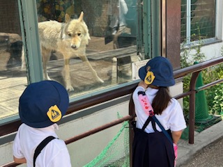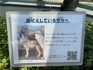 オオカミの前で、遠吠えのマネをしています。でもオオカミには、自分たちの仲間ではないなと、バレてしまうそうです。