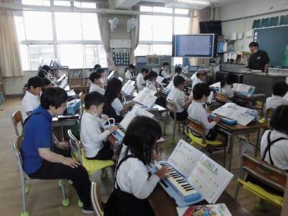 職員室に2年生の元気な鍵盤ハーモニカの音色が聞こえてきました。