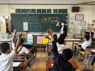 今日は、他校の栄養教諭の先生が、4年生に「野菜をたべよう」という授業をしていただけました。体にとっていい話をたくさん聞きました。順次、全学年に授業をしていただきます。