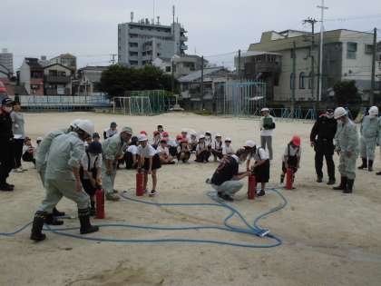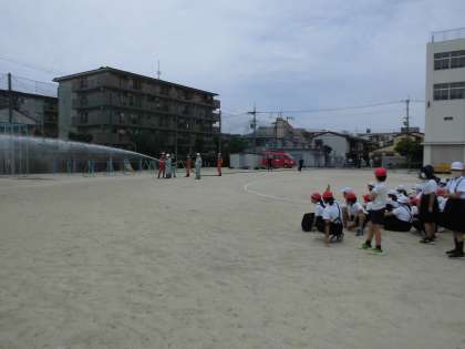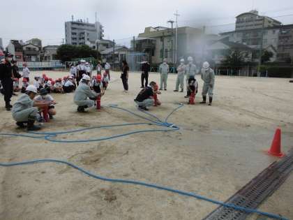 最後には消防署の方、地域の方が大型のホースを使った放水訓練の様子を見せてくれました。