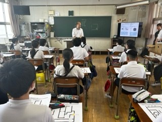 6年生のプログラミングの授業の後、旭区の東中区長か「ら6年生に伝えたい大切なこと」としてご授業いただきました。パソコンが使われるようになって、「その使うデータ量が、この60年間で1兆倍になっていること」、「なぜ今SDGsが言われるようになったのか」をお話しいただき、「みなさんは、それに振り回されることなく使う側になってください」というお話をされました。そして、「今、座って授業を受けているみなさんは実は秒速500kmおいう速度で宇宙を駆け抜けているんだ。そんなことを思えば、夢はもっと膨らんでいきますよ」とお話されました。先ほどの大学の先生に授業を受ける機会もなければ、区長からお話を直接聞く機会もなかなかありません。しっかりと子どもたちの胸に刻まれたことと思います。」