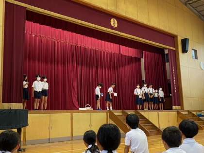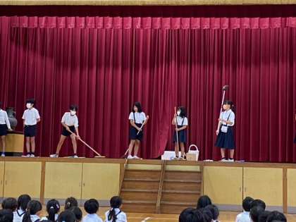 学校をきれいに、美しくするための工夫や方法、自分たちができることなどをわかりやすくみんなに伝えてくれました。