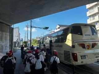 今日から5年生は兵庫県の東ハチ高原に向けて林間に出発しました。代表児童のあいさつの後、今回は、努力、協力、友情を大切にがんばりましょうと話をしました。これから三日間様々な体験をします。楽しみです。